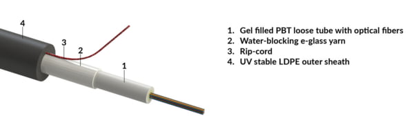 Central loose tube cable, outdoor-use, no armour, LDPE sheath - black, 01x04-fibers OM3 (R855502)