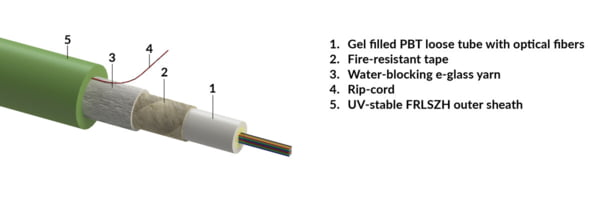 Central loose tube cable, fire-resistant, universal-use, FRLSZH sheath - green, Dca, 01x24-fibers OM3 (R855959)