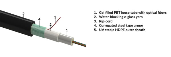 Central loose tube cable, outdoor-use, CSTA - steel tape armour, HDPE sheath - black, 01x06-fibers OM3 (R855716)