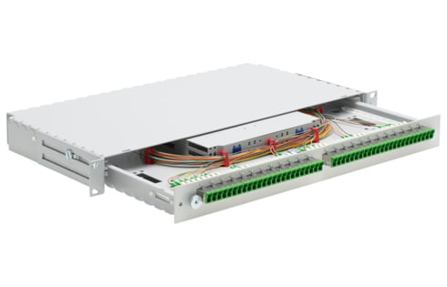 Scope of supply 19" 1U slide-in unit, splice tray plate with 2 splice trays radius 40 mm, fastening material, labeling strips and installation manual Front panel equipped with adapters and pigtails Mechanical Data Dimensions 43.6 mm x 482.6 mm x 230.0 mm / 1.717 in x 19 in x 9.055 in (W x H x […]