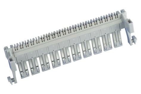 The disconnecting element can be snapped onto the connection and the normally open module. For wire Ø 0.40-0.65 mm, with double contact.