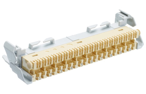 The disconnecting element can be snapped onto the connection and the normally open module. For wire Ø 0.40-0.65 mm, with double contact.