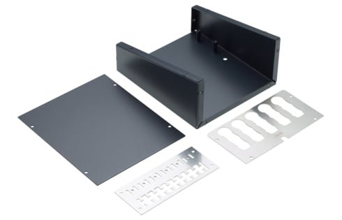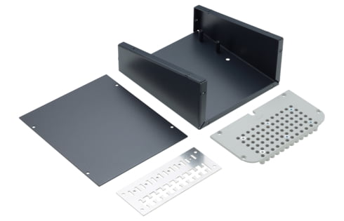 Distributor box for a flexible split-up / summing-up of different fiber optic cables and loose tube fiber. For split-up using the plate (metal) for up to 10 x 17 mm tubes. Cabel fixation be using the hammer head solution. Additional plate for fixation of up to 12 x cable strength members.
