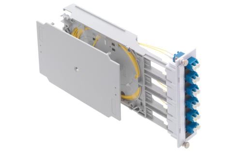 Scope of supply Slide-in unit, splice trayradius 35 mm, fastening material, labeling strips and installation instructions Metal front panel equipped with 6 x LC-Duplex adapters, pigtails inserted and ready for splicing Mechanical Data Dimensions 35.0 mm x 129.0 mm x 225.0 mm / 1.378 in x 5.079 in x 8.858 in (W x H x […]