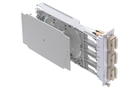 Scope of supply Slide-in unit, splice trayradius 35 mm, fastening material, labeling strips and installation instructions Plastic front panel equipped with 6 x LC-Duplex adapters, pigtails inserted and ready for splicing Mechanical Data Dimensions 35.0 mm x 129.0 mm x 225.0 mm / 1.378 in x 5.079 in x 8.858 in (W x H x […]