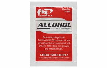 Fast evaporating alcohol. Pre-moistened wipe cleaner for use with optical fiber to remove dust, dirt and oils. Non-lining, non-abrasive pre-moistened wipe.