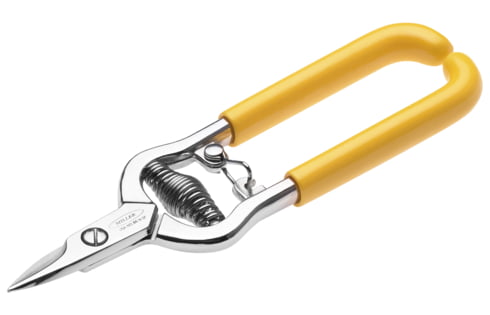 The Kevlar scissor has a hardened, serratedstainless steel blade for cutting the Kevlar (strength member in fiber optic cables) and other aramid fibers and composites. The scissor opens automatically by a spring and is lockable for transport.