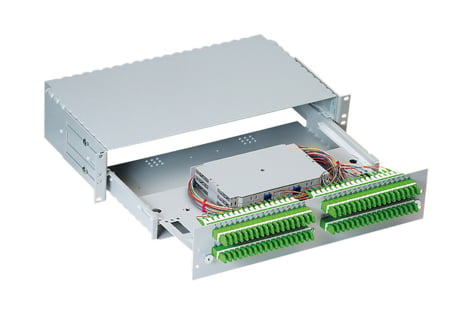 Scope of supply 19" 2U slide-in unit, splice tray plate with 4 splice trays radius 40 mm, fastening material, labeling strips and installation manual Front panel equipped with adapters and pigtails Mechanical Data Dimensions 88.0 mm x 482.6 mm x 230.0 mm / 3.465 in x 19 in x 9.055 in (W x H x […]