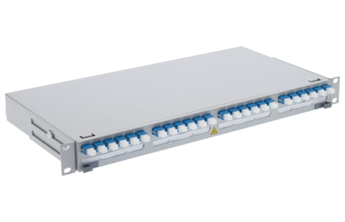 Scope of supply 19" 2U slide-in unit, splice tray plate with 3 splice trays radius 40 mm, fastening material, labeling strips and installation manual Front panel equipped with adapters and pigtails Mechanical Data Dimensions 43.6 mm x 482.6 mm x 230.0 mm / 1.717 in x 19 in x 9.055 in (W x H x […]