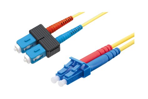 Fitted with one SC-Duplex PC and one LC-Duplex PC connector. Connector color SC-Duplex: blue. Connector color LC-Duplex: blue. Lever color LC-Duplex: blue. Fiber: SM E9/125 G.652.D/G.657.A1 (OS1, OS2). Cable: F8 2.0x4.1 mm, yellow.