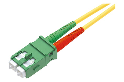 Both sides fitted with SC-RJ APC 8° connector. Connector color: green. Fiber: SM E9/125 G.652.D/G.657.A1 (OS1, OS2). Cable: F8 2.7x5.5 mm, yellow.