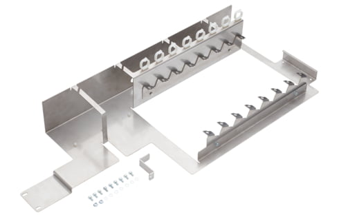 Holder unit for up to 8 patch inserts (192 LC-Duplex patch connections) or 8 splitter inserts 1:32 (1 U). Only suitable for SCM 8 HD and 11 HD street cabinets. Incl. fasteningmaterial and patch cord guides.