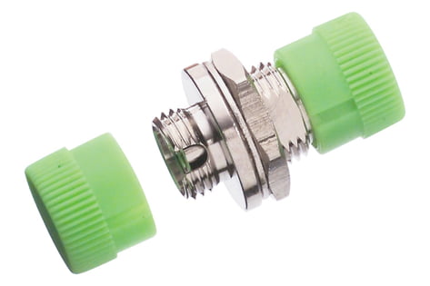 Adapter E-2000™-Compact with semi-transparent dust caps. Quick mounting clip and M2 thread integrated.
