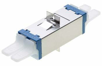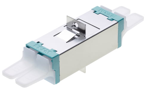 Adapter E-2000™-Compact flangeless with semi-transparent dust caps. Quick mounting clip integrated.