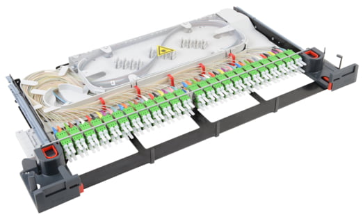 The 3/4U PRIME Ribbon Splice Unit RSU is a pure spliceunitfor up to 288 splices. The splice tray has an integrated splice protector holder for up to 24 heat shrink ribbon splice protectors(8F / 12F). The ribbon fiber feed takes place from the leftand is fully protected. The PRIME-RSU-LE is suitable for PRIME Sub-Rackswith back mounting.