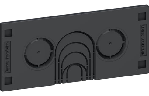 Screen for accommodating up to two 5-pole industrial connectors (e.g. Wieland Gesis® or Wago Winsta®). Suitable for installation in U-Boxes with 1 width unit (WU) and 1.5 height units (HU).