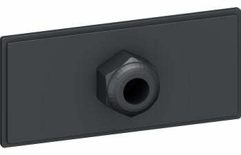 Screen with cable fitting M20 for cable passage with strain relief for U-Boxes with 2 width units (WU) and 1 height unit (HU).