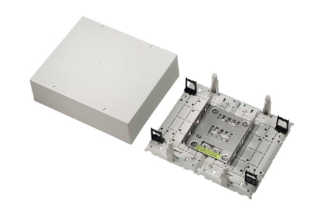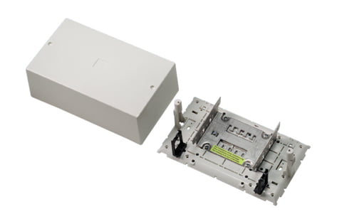 Plastic housing featuring snap-on cover andintegral pre-determined breaking points for cable entry.