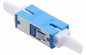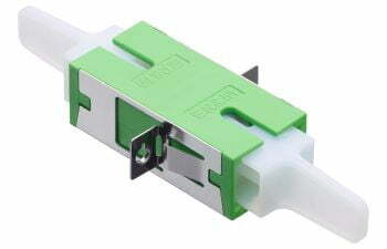 SC adapter flangeless with semi-transparentdust caps. Quick mounting clip integrated.