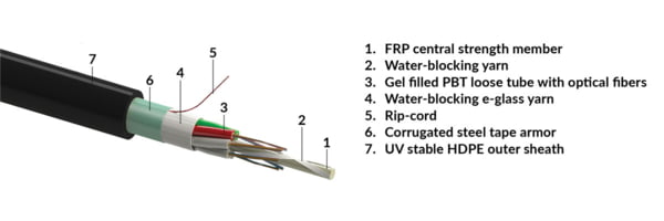 Stranded loose tube cable, outdoor-use, CSTA-steel tape armour, HDPE sheath - black, 12x12-fibers G657.A1 (R857145)