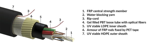 Stranded loose tube cable, outdoor-use, FRP armour, HDPE sheath - black, 12x12-fibers G657.A1 (R857542)