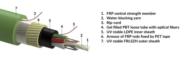 Stranded loose tube cable, universal-use, FRP armour, FRLSZH sheath - green, Fca, 05x12-fibers G657.A1 (R857566)