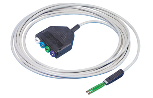 Test adapter with 4 mm banana plugs for connecting any measuring or testing device. The plugs are marked in different colors. Can be used with all VS Compact modules. Contact interface on cable or jumper side.