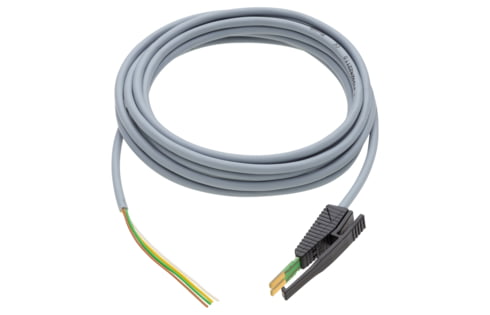 Test cord for testing connection and disconnection modules. Flexible cable, featuring a test plug on one side, and a cable lug for screw connections on the other. Contact interface on one side.