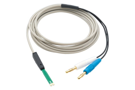 Test cord for testing connection and disconnection modules. Flexible cable, featuring a test plug on one side, and a cable lug for screw connections on the other. Contact interface on both sides.