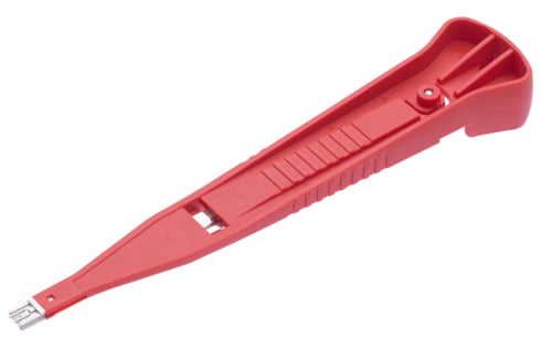 To terminate wires on all VS Compact modules. The wires are contacted and cut to length in one single and efficient step. The longer shaft and hook allows to terminate and to remove jumpers with the splitter or the protective elements remaining in place.