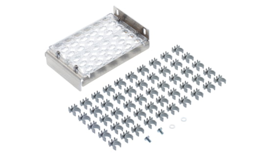 Set to outfit 24 blow-in tubes of 12 mm with a click-and-fix strain relief. Street cabinets of type SCM 4 HD can be fitted with 1 set. The set includes fastening material and 25 tube clips for the profile rails.