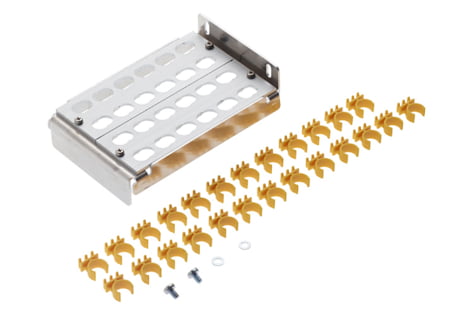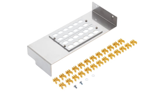 Set to outfit 24 blow-in tubes of 14 mm with a click-and-fix strain relief. Street cabinets of type SCM 4 HD can be fitted with 1 set. The set includes fastening material and 25 tube clips for the profile rails.