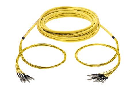 Both sides fitted with 12 SC APC connector. Connector color: green. Fiber: SM E9/125 G.652.D/G.657.A1 (OS1, OS2). Cable: Breakout 12-fibers, Ø 12.5 mm, yellow. Fan-out legs of1.0 m length (on both sides).