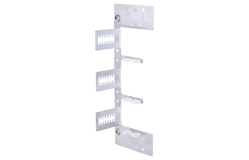 Cable fixing plate Basic Kit for a tool-free mounting in the ODF frame on the right side. Up to 24 medium-sized (24/48 fibers) or 48 small (12 fibers) fiber dividers can be attached with plastic clips or cable ties.