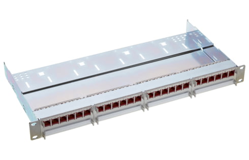 Metal patch panel with integrated cable tieshelf. Ready for all HD inserts (copper / FO).