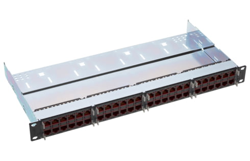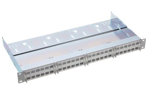 Metal patch panel with integrated cable tieshelf. Ready for all HD inserts (copper / FO).