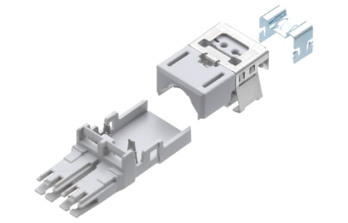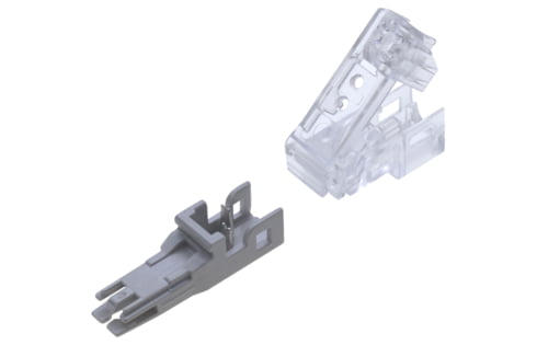 Matching all R&M freenet RJ45 connection modules Cat. 5e, Cat. 6 and Cat. 6 A. Employable on the patchpanel as well as at the workplace outlet. Allows the cable sharing of up to four services by using RMS45 connectors. Tool-free mounting.