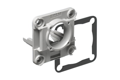 Mounting frame Interbus designed for round mounting cutouts. Suitable for protective housing for field terminateable RJ45 plug with snap latch. Protection class IP67 according to IEC60529. Accommodates optional color coding. Polyamide, traffic gray (RAL 7042). Including gasket and screws M3 x 10mm.
