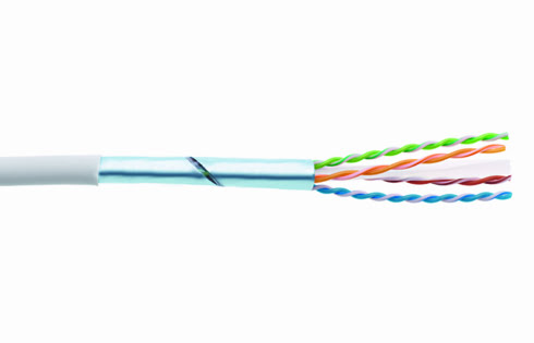 Cat. 6 A, U/FTP cable. Foil shielding of pairs. 100 Ohm impedance. Data transmission frequencies of up to 650 MHz.