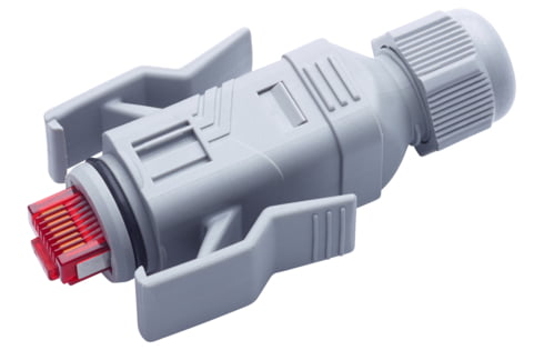 Field-terminated RJ45 plug connector, shielded and unshielded, Cat.5e 8-pole, terminated in IDC technology, suitable for solid or stranded wires, 2- to 8-wire conductors of diameter AWG 23 to AWG 26 (AWG 23/7 - 26/7), housing IP67, for cable diameters of 5.0mm to 8.5mm, coding in acc. with TIA 568A/B.