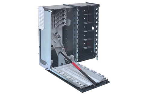 Maximum capacity: 576 fiber optic terminations.