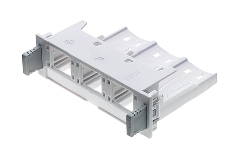 Connection module holder 2U Global, unshielded,plastic (PC), halogen-free, color light gray (NCS 1005-R80B).
