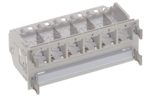 Connection module holders HD, 6-port with blindelement, unshielded, plastic (PC), fiberglass-reinforced, halogen-free, color light gray (NCS 1005-R80B).
