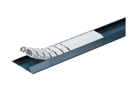 Fix the rail on the floor, press the FLEXkanal into it. The angled sides minimize the tripping risk.