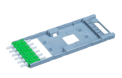 Netscale 72 adapter cassettes are available as Base-12 versions with 6 ports and Base-8 versions with 4 ports for multimode and singlemode applications.