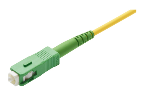 Mounted on both sides with SC connectors in acc. with IEC 61754-4. Zirconia (ceramic) ferrule with an angled polish APC 8° endface geometry, connectors tuned in accordance with IEC 61755-3-2 and qualified in acc. with IEC 61753-1 for category C (controlled environment). Green connector housing (singlemode), material PBT / UL 94 V-0, green strain relief, material TPE / UL 94 V-0 and plastic dust cover.