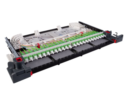 3 /4U PRIME FTU is the splice patch unit. The basic fiberinlay is suitable for 24/48 HS shrinkage contactors. Depending on the number of fibers, up to three additional MCM splice trays are equipped for 24/48 HS each.