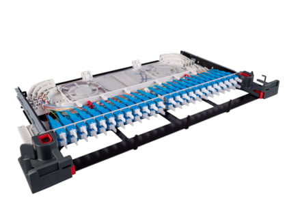 3 /4U PRIME FTU is the splice patch unit. The basic fiberinlay is suitable for 24/48 HS shrinkage contactors. Depending on the number of fibers, up to three additional MCM splice trays are equipped for 24/48 HS each.