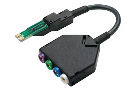 Test adapter for the connecting of any measuring and test equipment with 4 mm jack sockets. Color-coded jacks. Contact interface on both sides.