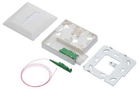 Ready for splicing with 1 E-2000™ adapter (with integrated self-closing metal laser protection flaps), 1 E-2000™ pigtail (600 µm fibers) included.